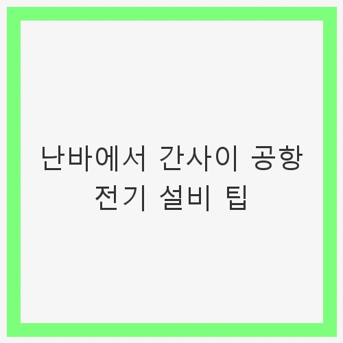 간사이 공항에서 난바역으로의 이동은 일본 여행의 시작을 알리는 중요한 과정입니다. 다양한 이동 수단이 있지만, 난카이 라피트는 빠르고 편리한 선택으로 많은 이들에게 사랑받고 있습니다. 전기 설비와 관련된 팁들을 활용하여 보다 매끄럽고 즐거운 여행을 준비해보세요. 오사카에서의 멋진 여행이 여러분을 기다리고 있습니다!