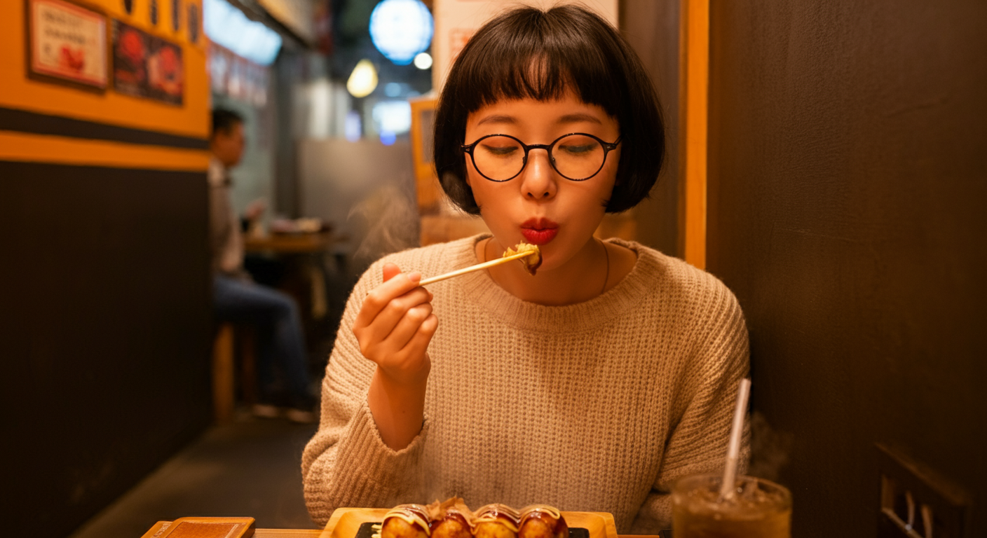 이건 오사카 먹방의 기본 중 기본이에요. 겉은 바삭하고 속은 촉촉한 문어볼, 거기에 가쓰오부시와 마요네즈까지 더하면 입안에서 감칠맛 폭발! 현지에서 맛보면 한 층 더 특별하답니다. - 오코노미야키